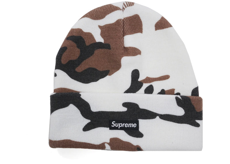 The Supreme Printed Camo Beanie Brown is now available at Side Kicks!