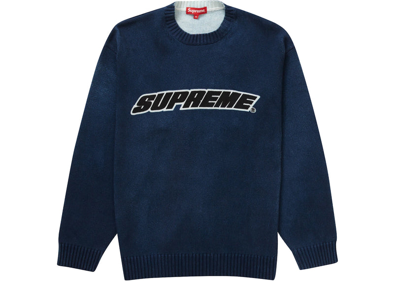 The Supreme Printed Washed Sweater Navy is now available at Side Kicks!
