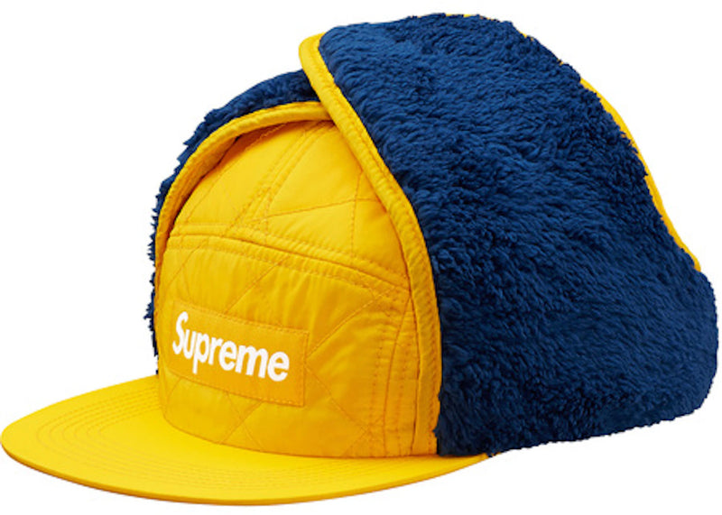 The Supreme Quilted Earflap Camp Cap Yellow is now available at Side Kicks!