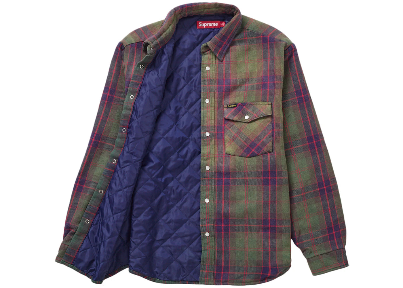 The Supreme Quilted Flannel Snap Shirt Green is now available at Side Kicks!