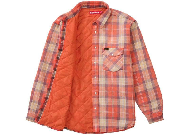 The Supreme Quilted Flannel Snap Shirt Orange is now available at Side Kicks!