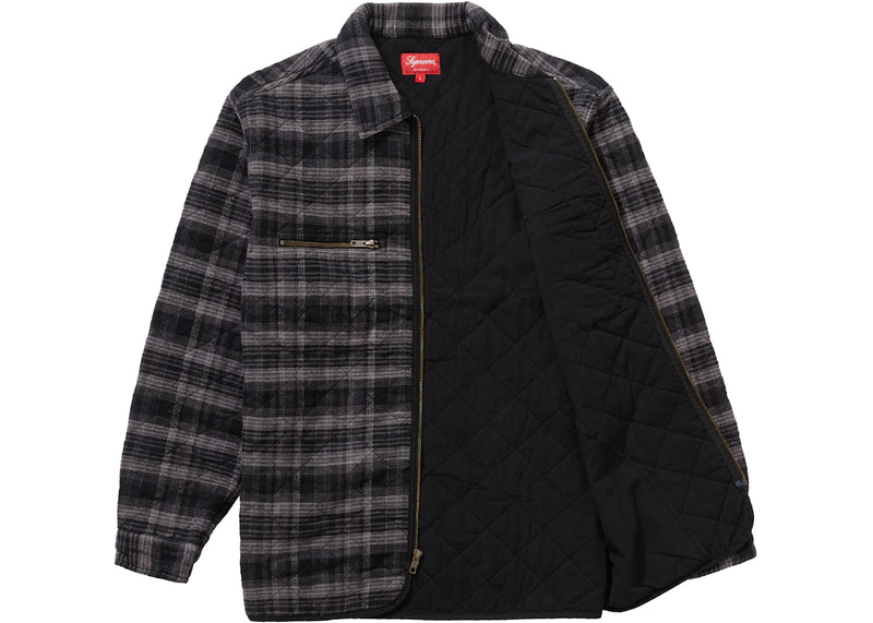 The Supreme Quilted Plaid Zip Up Shirt Black is now available at Side Kicks!