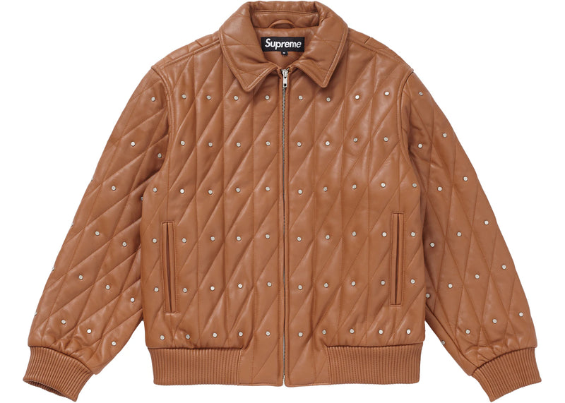 The Supreme Quilted Studded Leather Jacket Light Brown is now available at Side Kicks!