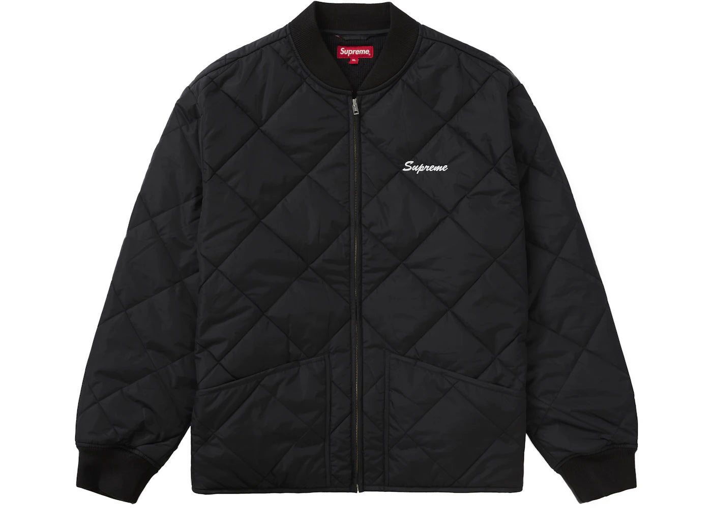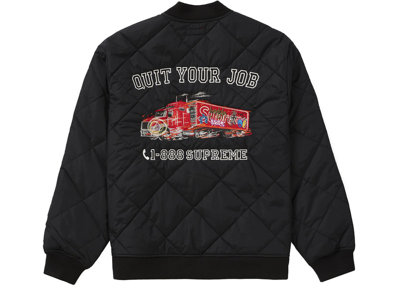 The Supreme Quit Your Job Quilted Work Jacket Black is now available at Side Kicks!