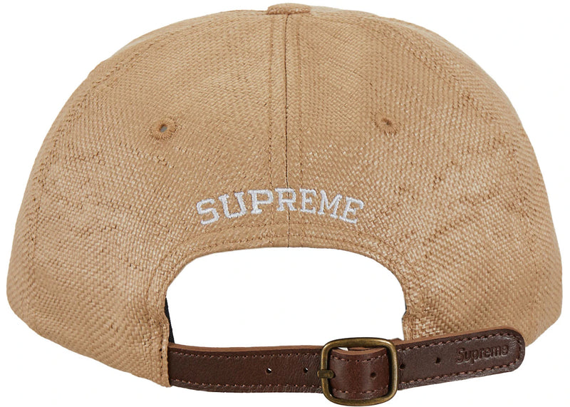 The Supreme Raffia S Logo 6-Panel Natural is now available at Side Kicks!