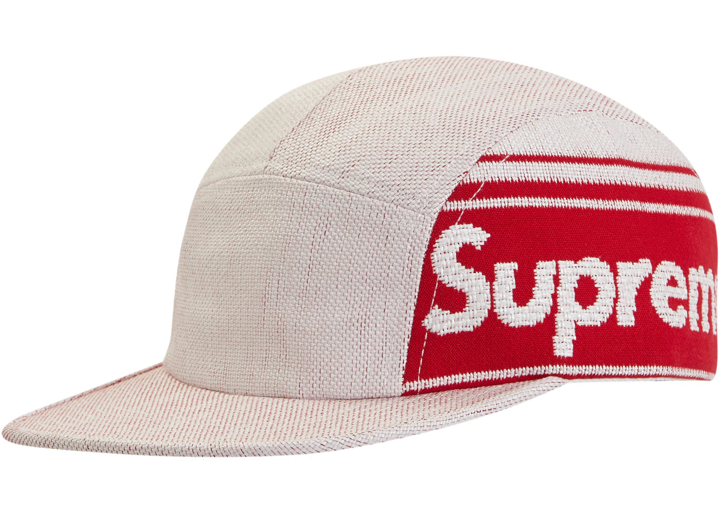 The Supreme Raffia Woven Logo Camp Cap White is now available at Side Kicks!