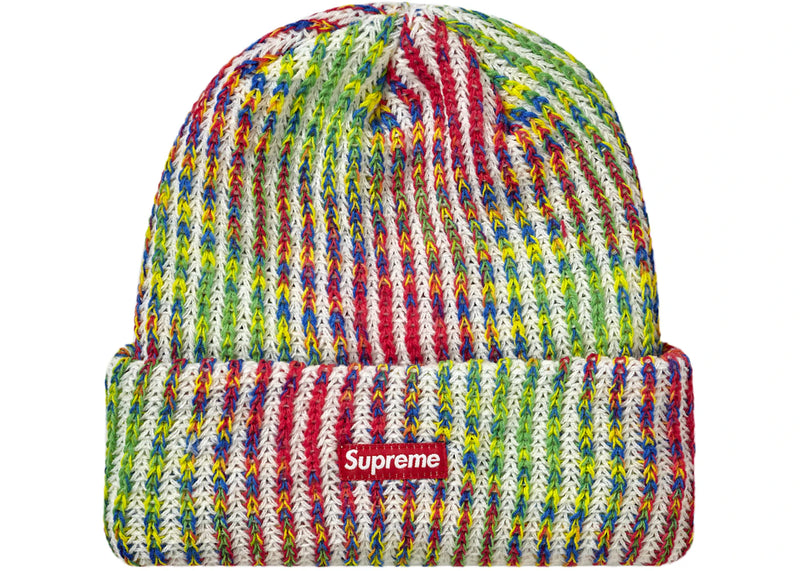 The Supreme Rainbow Knit Loose Gauge Beanie (FW21) White is now available at Side Kicks!