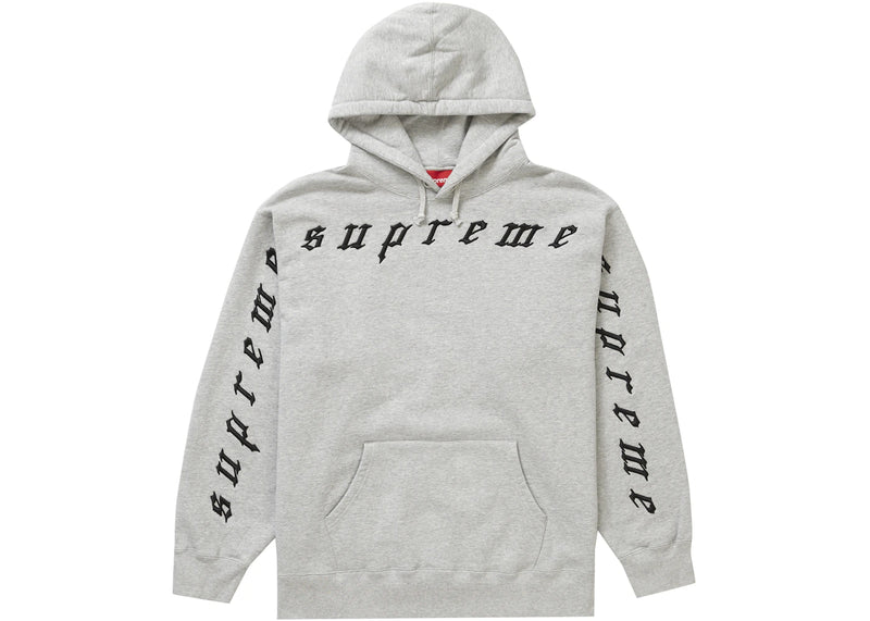 The Supreme Raised Embroidery Hooded Sweatshirt Heather Grey is now available at Side Kicks!