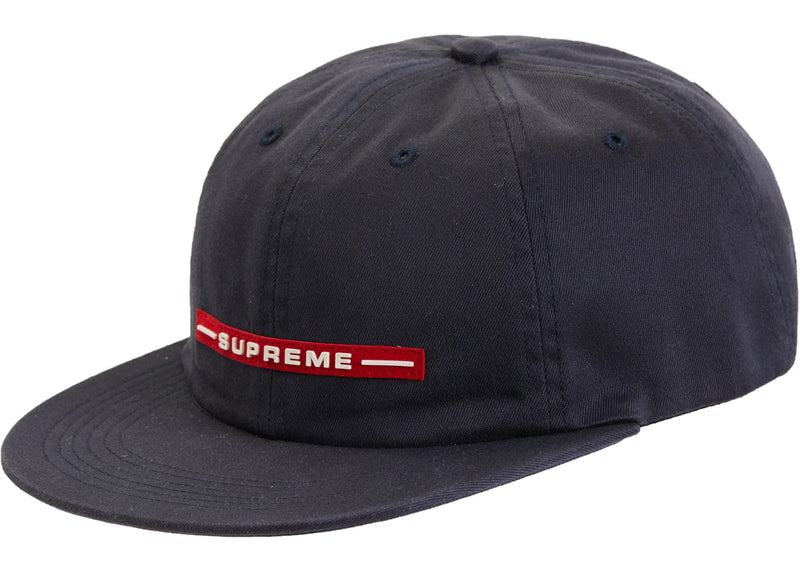 The Supreme Raised Logo 6-Panel Navy is now available at Side Kicks!