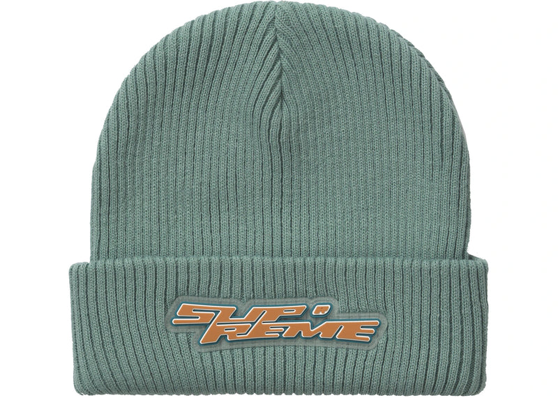 The Supreme Raised Logo Patch Beanie Sage is now available at Side Kicks!