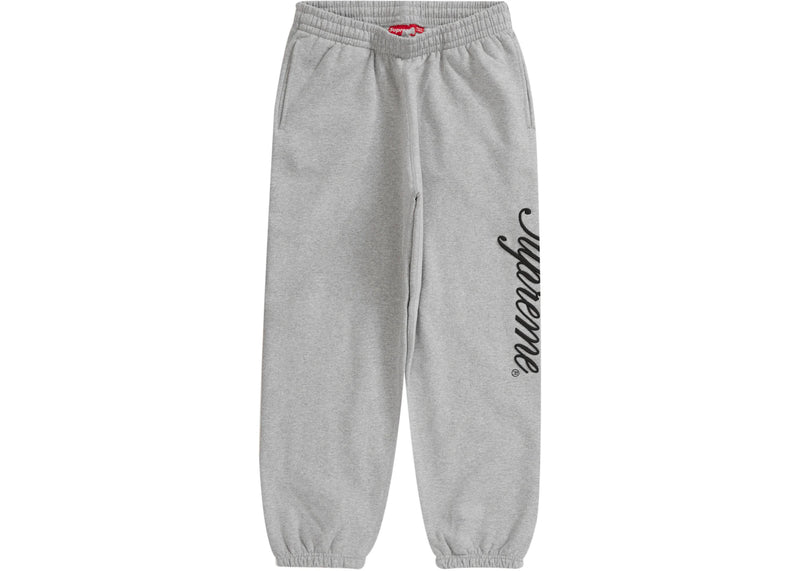 The Supreme Raised Script Sweatpant Heather Grey is now available at Side Kicks!