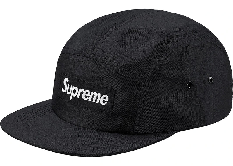 The Supreme Raw Silk Camp Cap Black is now available at Side Kicks!