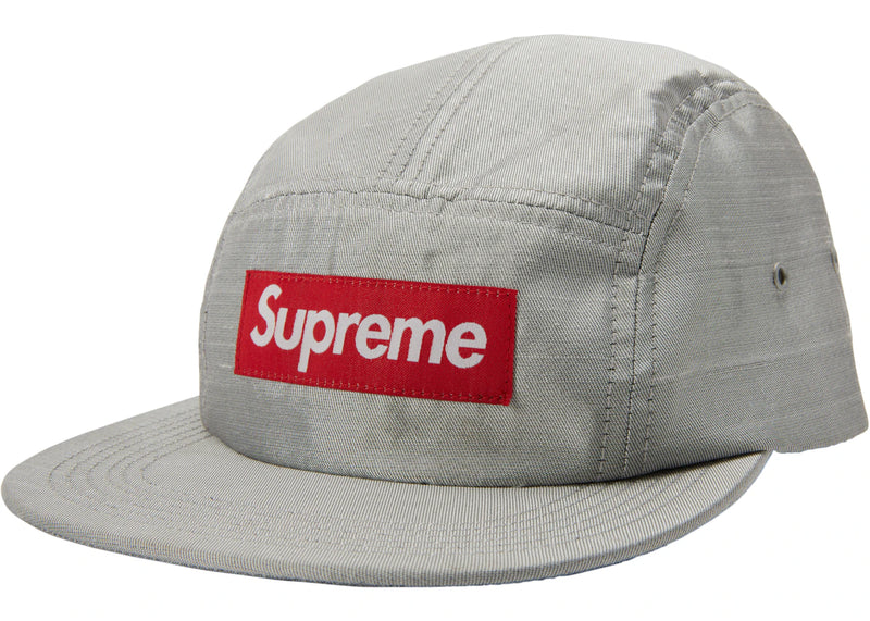 The Supreme Raw Silk Camp Cap Silver is now available at Side Kicks!