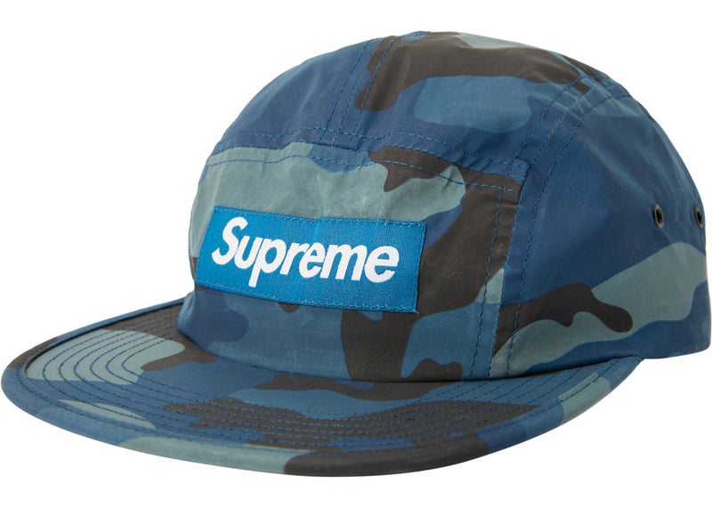 The Supreme Reflective Camo Camp Cap Blue is now available at Side Kicks!
