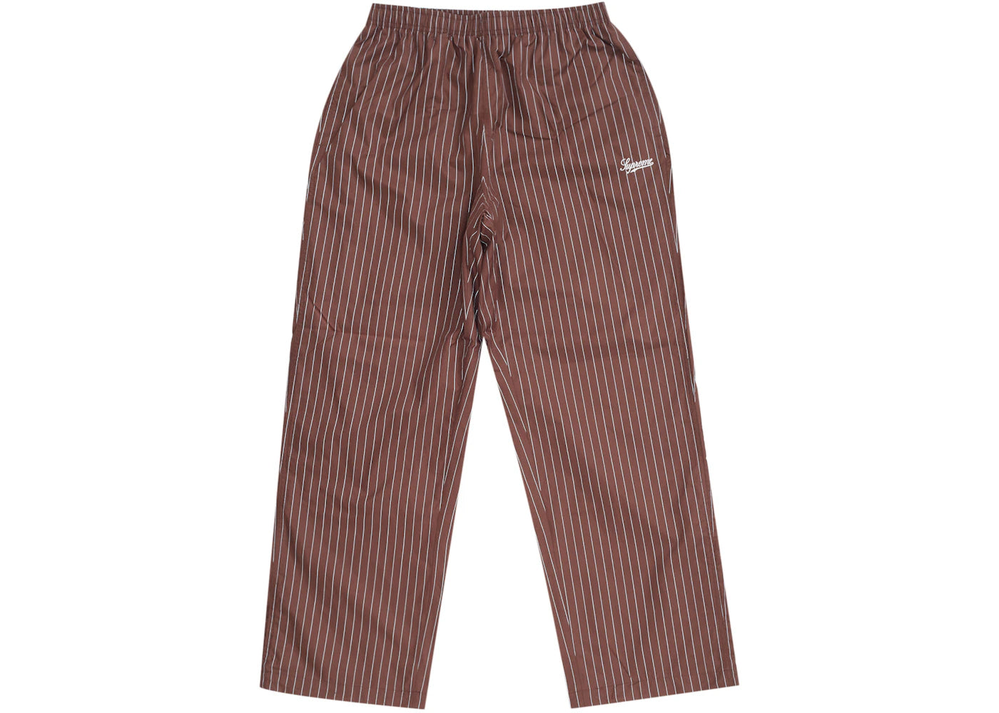 The Supreme Reflective Pinstripe Track Pant Brown is now available at Side Kicks!