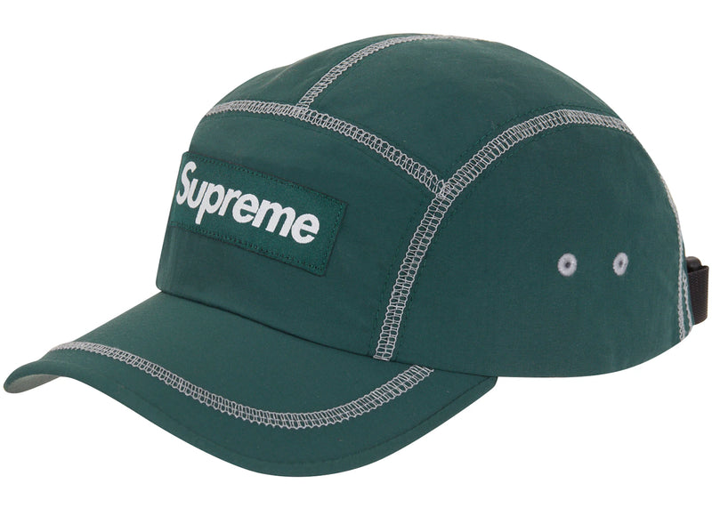 The Supreme Reflective Stitch Camp Cap Dark Green is now available at Side Kicks!