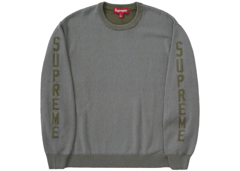 The Supreme Reflective Sweater Olive is now available at Side Kicks!