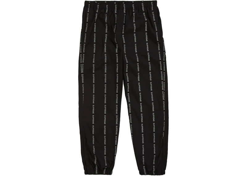 The Supreme Reflective Text Track Pant Black is now available at Side Kicks!