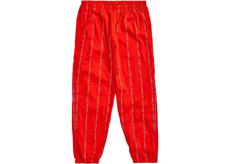 The Supreme Reflective Text Track Pant Orange is now available at Side Kicks!