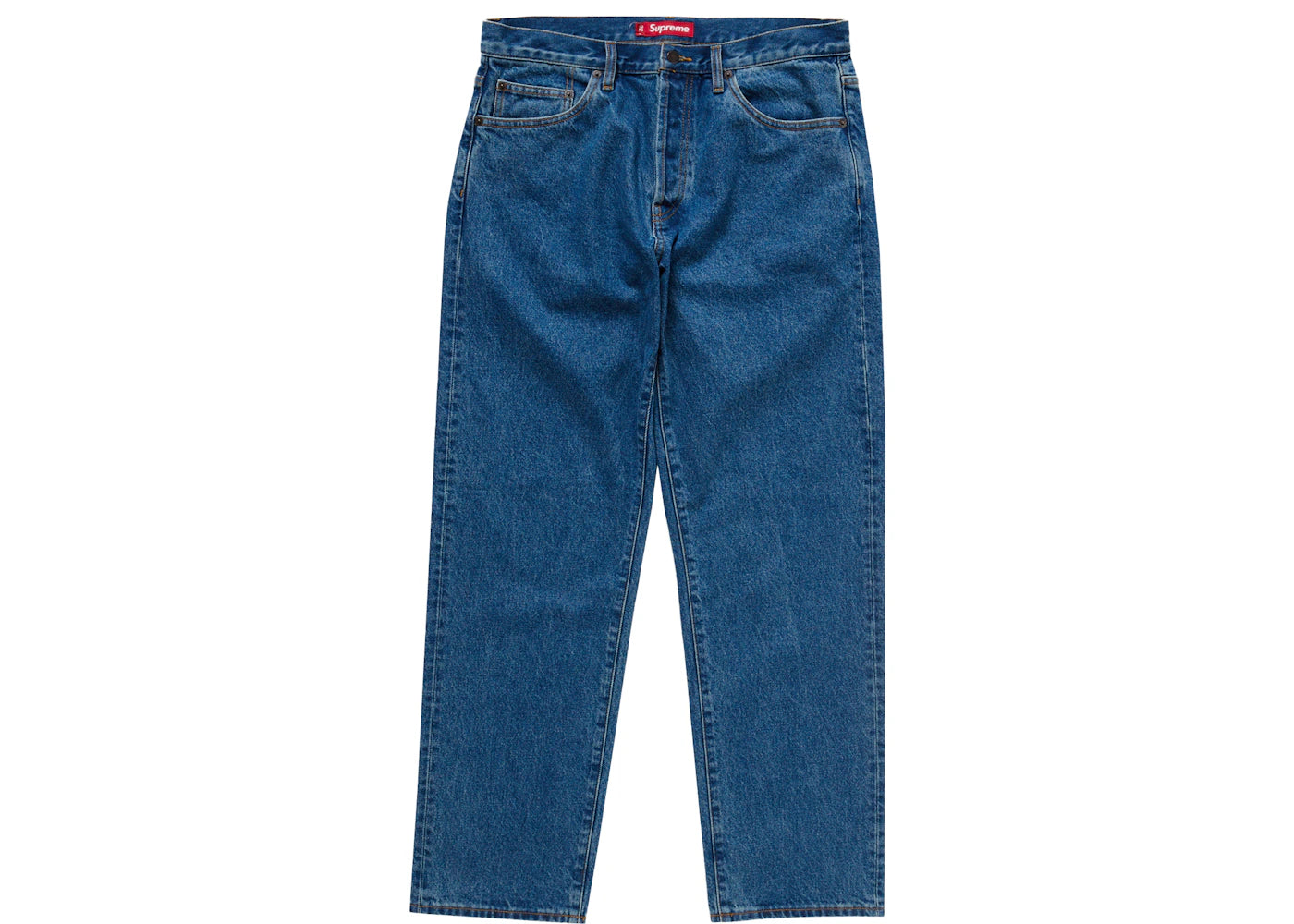 The Supreme Regular Jean (FW24) Washed Indigo is now available at Side Kicks!