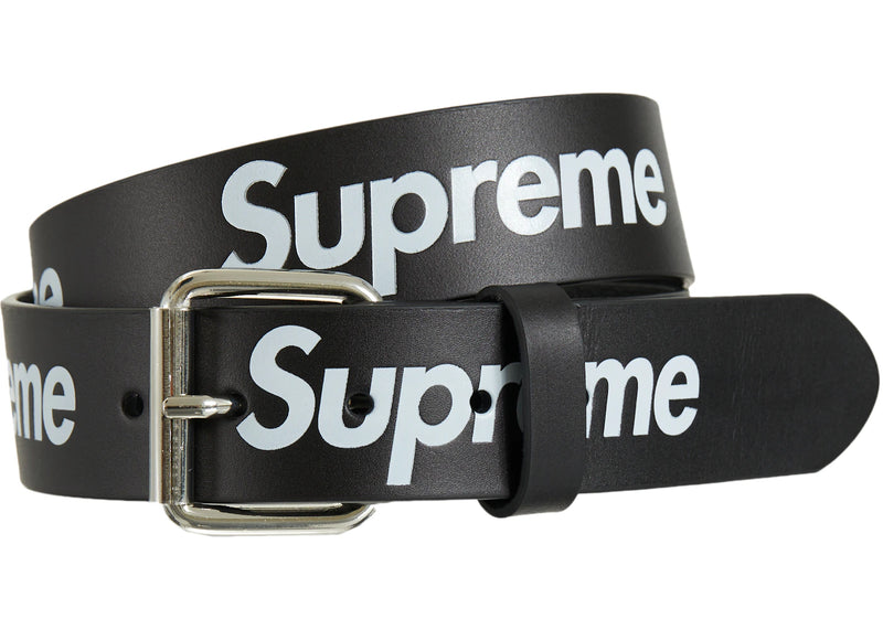 The Supreme Repeat Leather Belt Black is now available at Side Kicks!