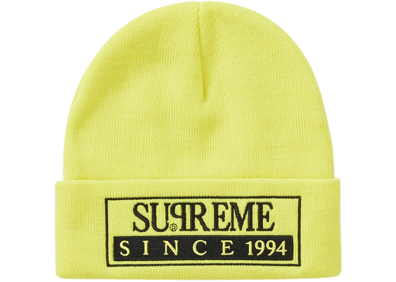 The Supreme Reserved Beanie Bright Yellow is now available at Side Kicks!