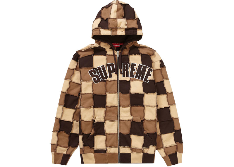 Supreme Reverse Patchwork Zip Up Hooded Sweatshirt Brown