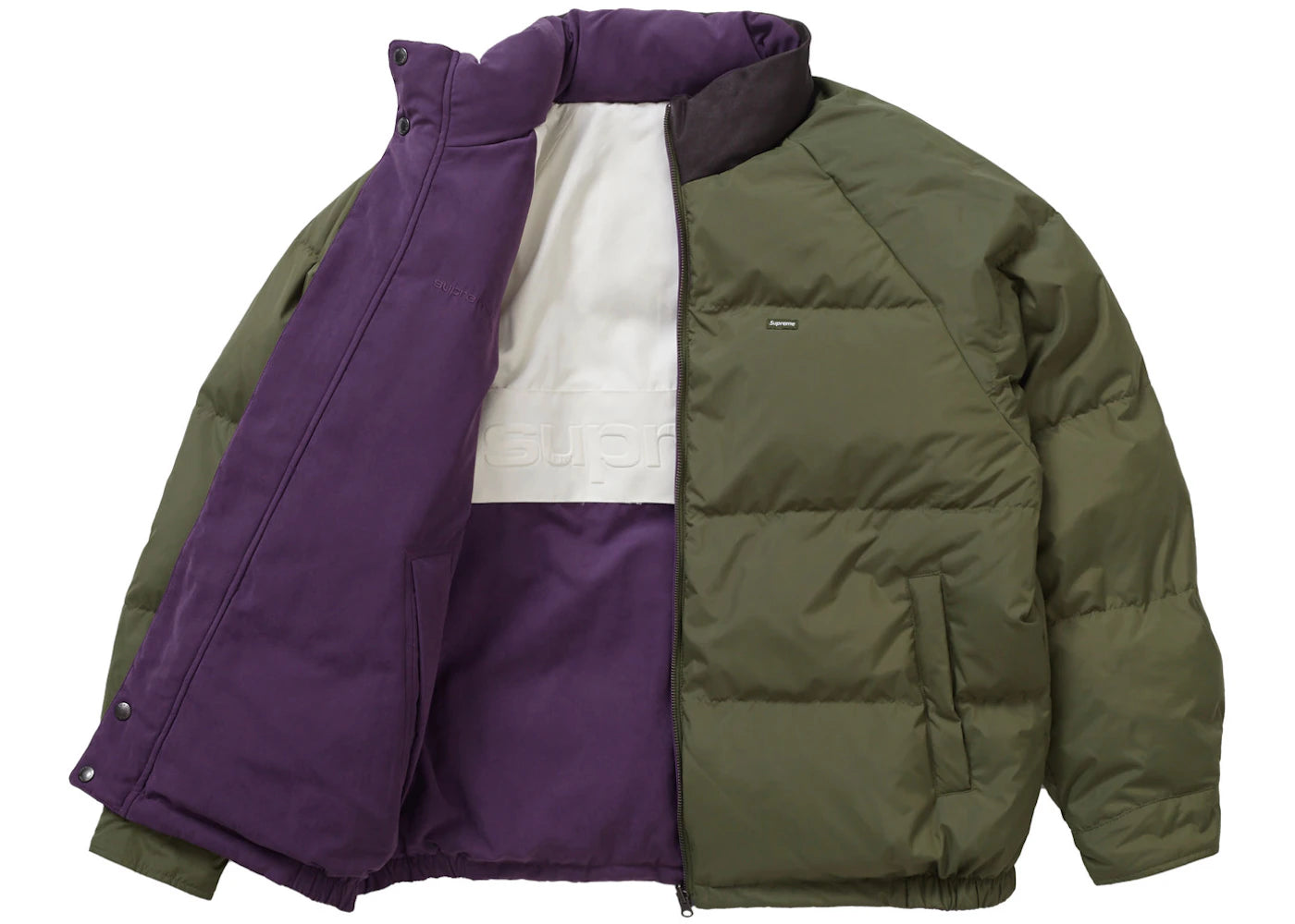 The Supreme Reversible Down Puffer Jacket Purple is now available at Side Kicks!