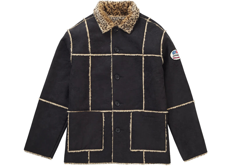 The Supreme Reversible Faux Suede Leopard Coat Black is now available at Side Kicks!