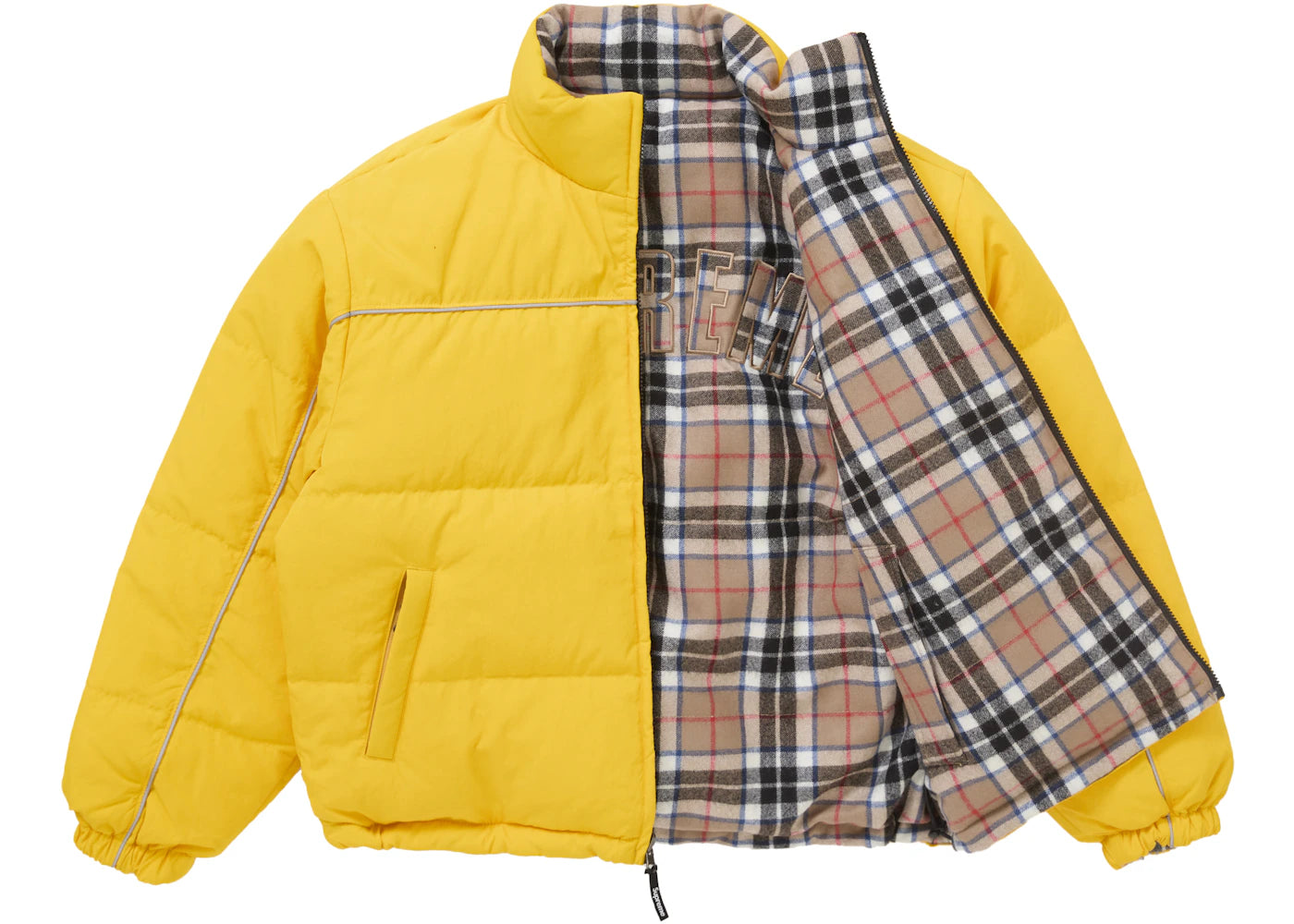 The Supreme Reversible Puffer Jacket Yellow is now available at Side Kicks!