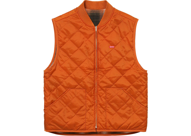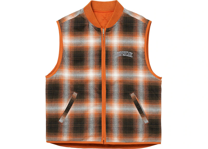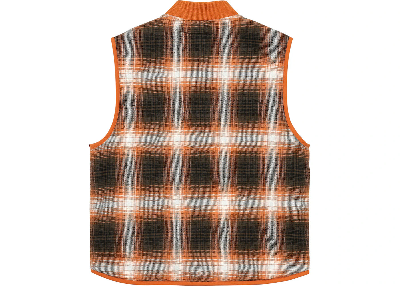 The Supreme Reversible Shadow Plaid Vest Rust is now available at Side Kicks!