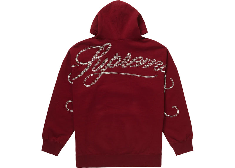 Supreme Rhinestone Script Hooded Sweatshirt Cardinal