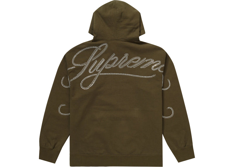 Supreme Rhinestone Script Hooded Sweatshirt Dark Olive