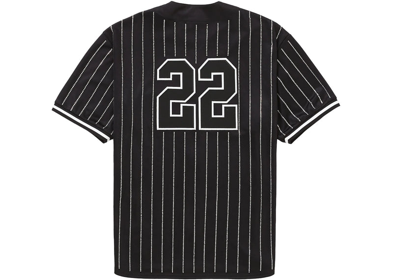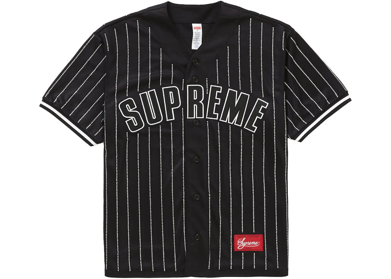 Supreme Rhinestone Stripe Baseball Jersey Black