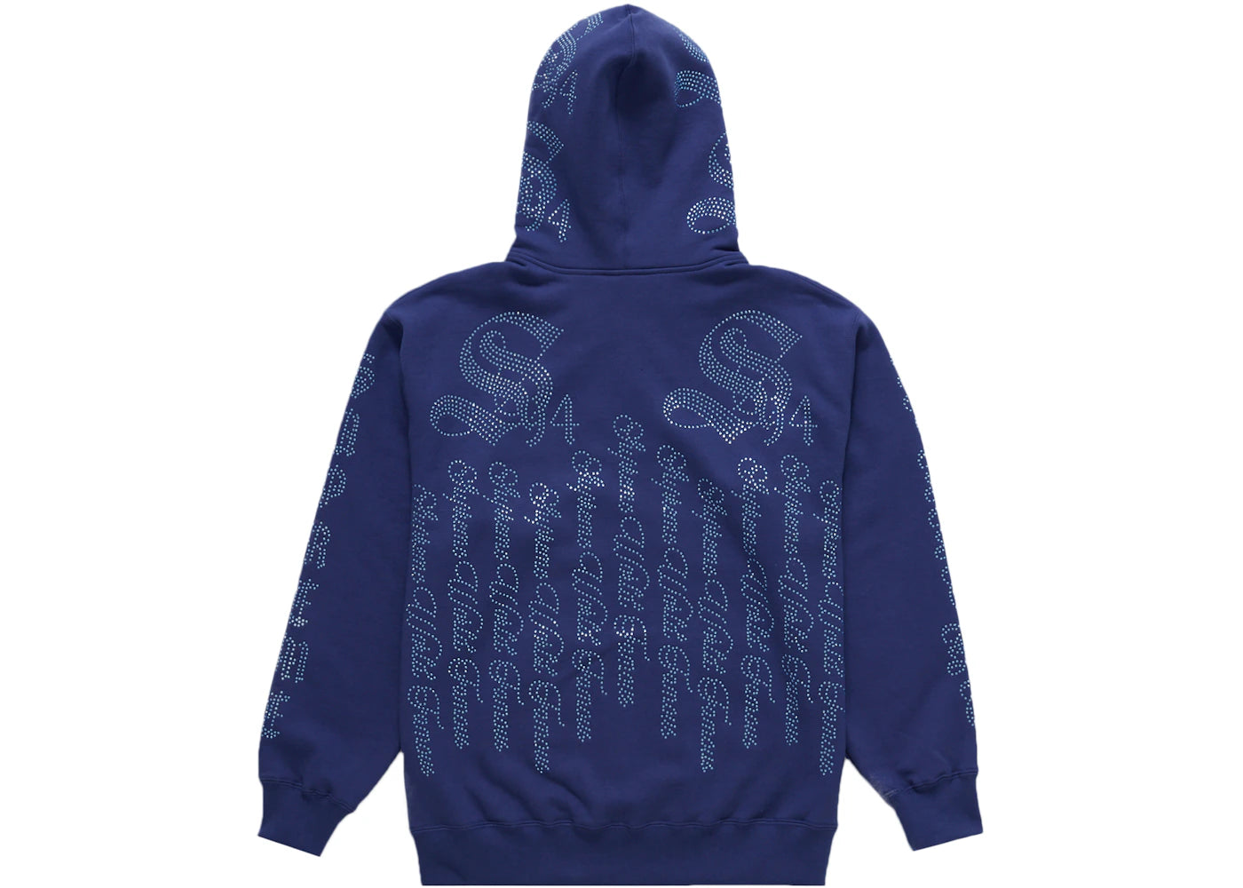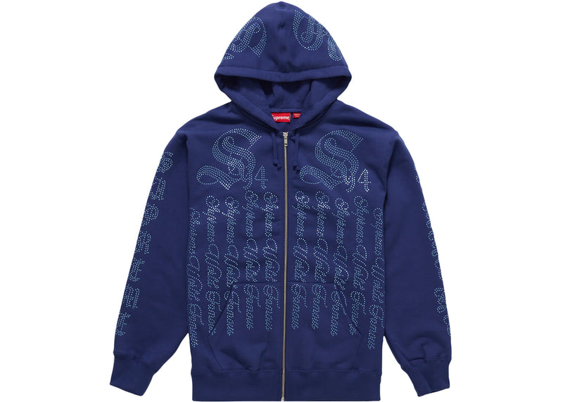Supreme Rhinestone Zip Up Hooded Sweatshirt Washed Navy