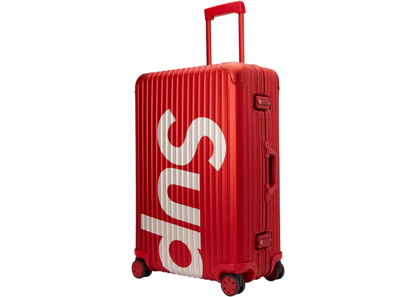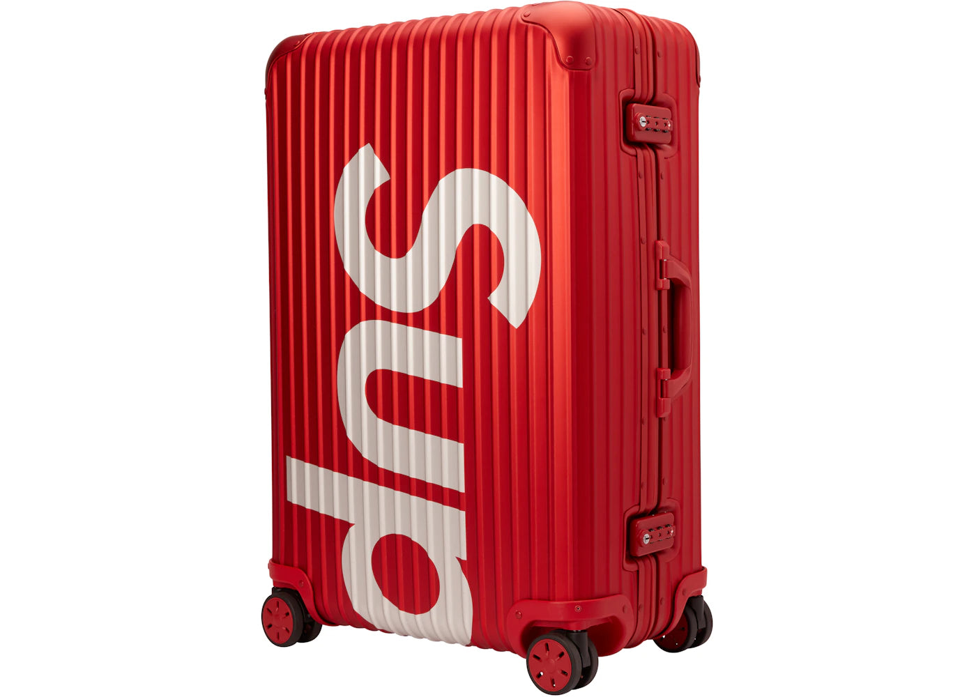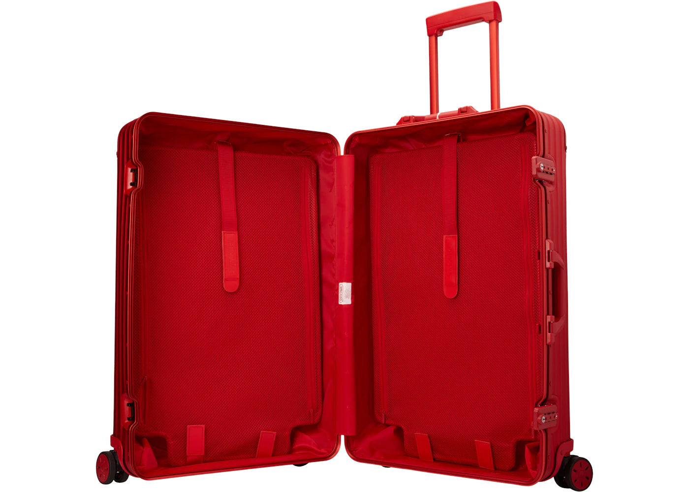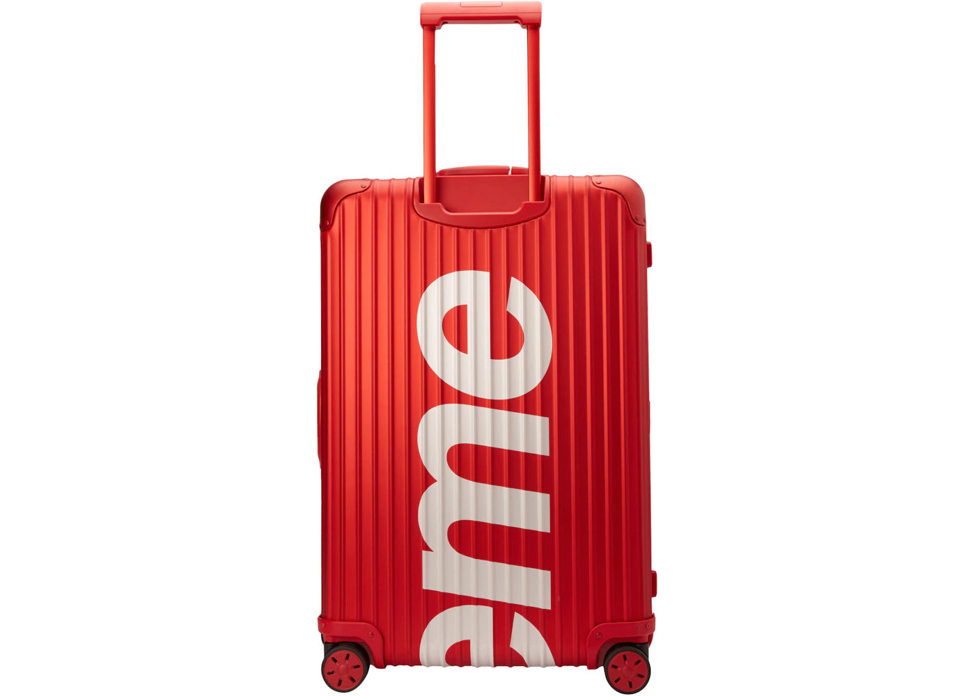 The Supreme RIMOWA Topas Multiwheel 82L Red is now available at Side Kicks!