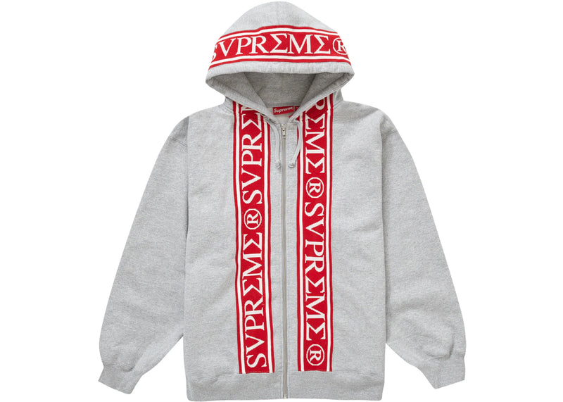 The Supreme Roman Zip Up Hooded Sweatshirt Heather Grey is now available at Side Kicks!