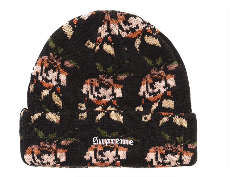 The Supreme Rose Jacquard Beanie Black is now available at Side Kicks!