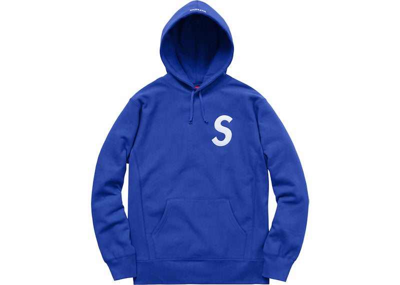 The Supreme S Logo Hooded Sweatshirt Blue is now available at Side Kicks!