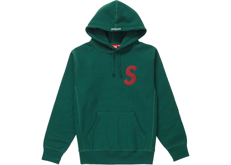 The Supreme S Logo Hooded Sweatshirt (FW18) Dark Green is now available at Side Kicks!