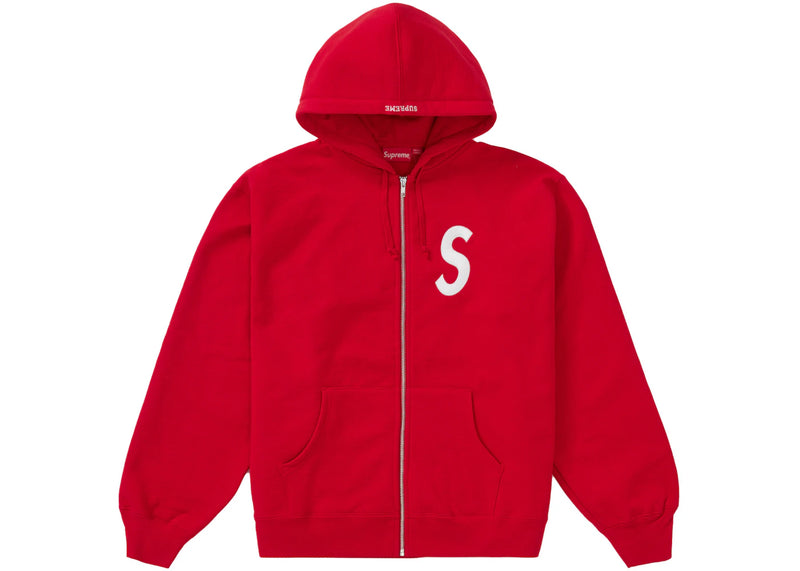 The Supreme S Logo Zip Up Hooded Sweatshirt Red is now available at Side Kicks!