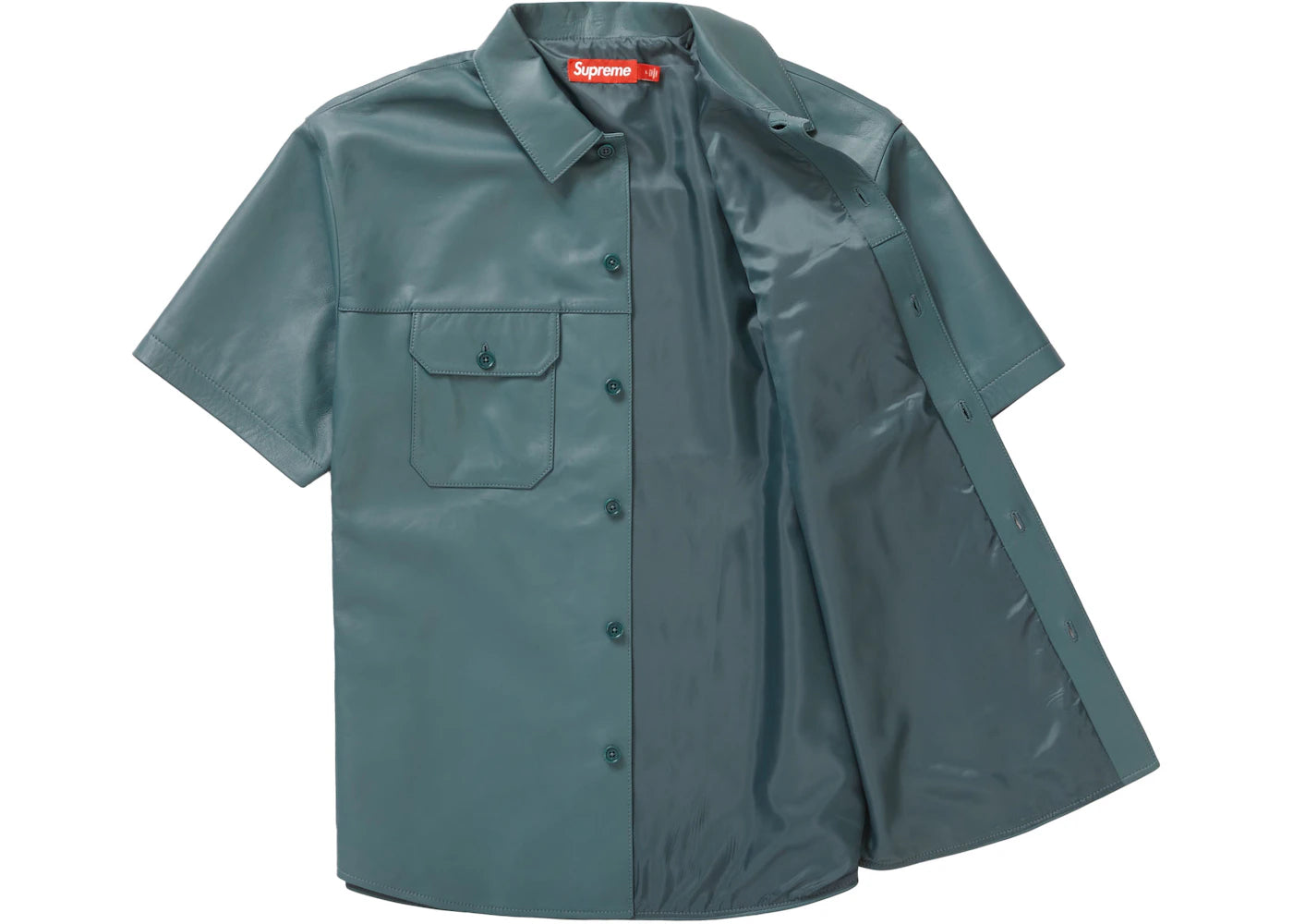 The Supreme S/S Leather Work Shirt Dusty Teal is now available at Side Kicks!