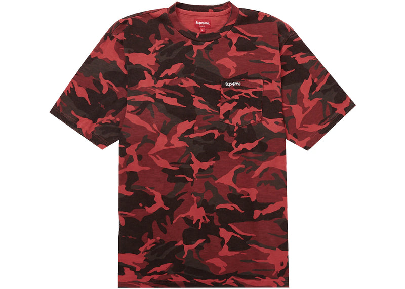 The Supreme S/S Pocket Tee (SS23) Red Camo is now available at Side Kicks!