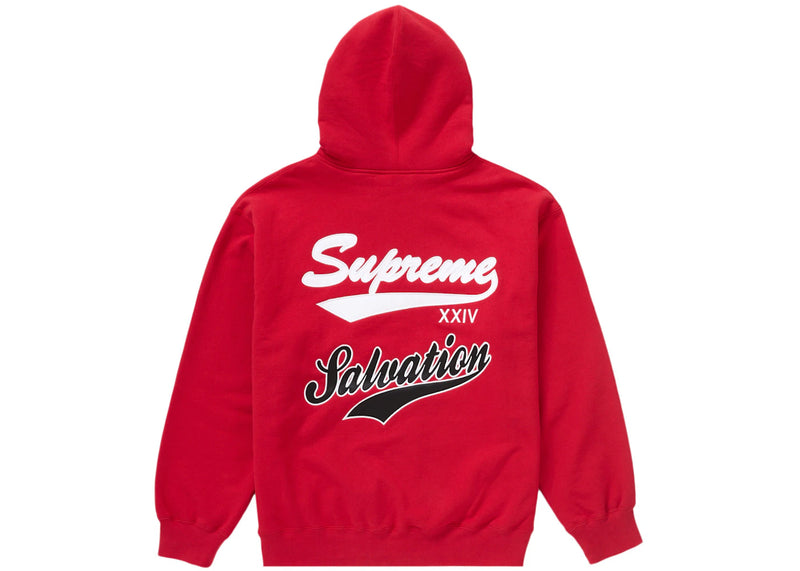 The Supreme Salvation Zip Up Hooded Sweatshirt Red is now available at Side Kicks!