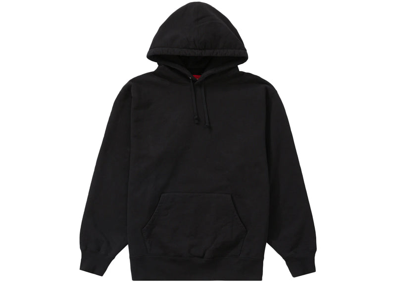 The Supreme Satin Appliqué Hooded Sweatshirt Black is now available at Side Kicks!