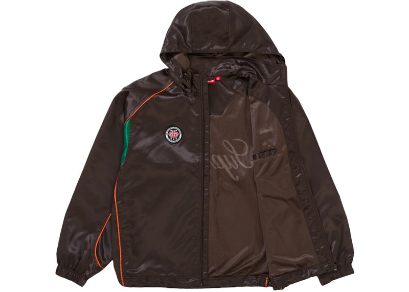Supreme Satin Hooded Track Jacket Brown