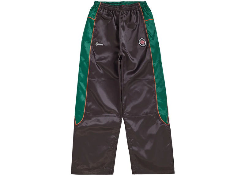 The Supreme Satin Track Pant Brown is now available at Side Kicks!