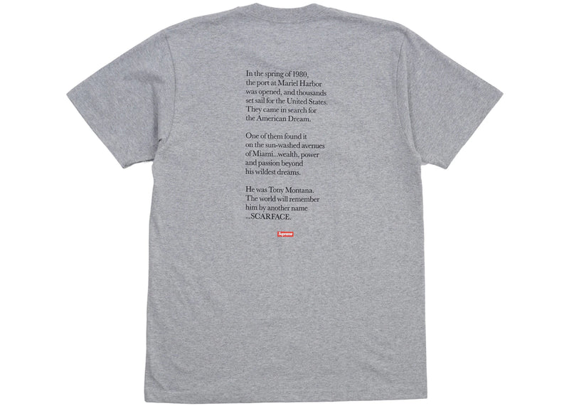 The Supreme Scarface Friend Tee Heather Grey is now available at Side Kicks!