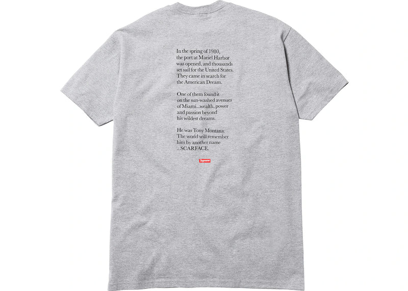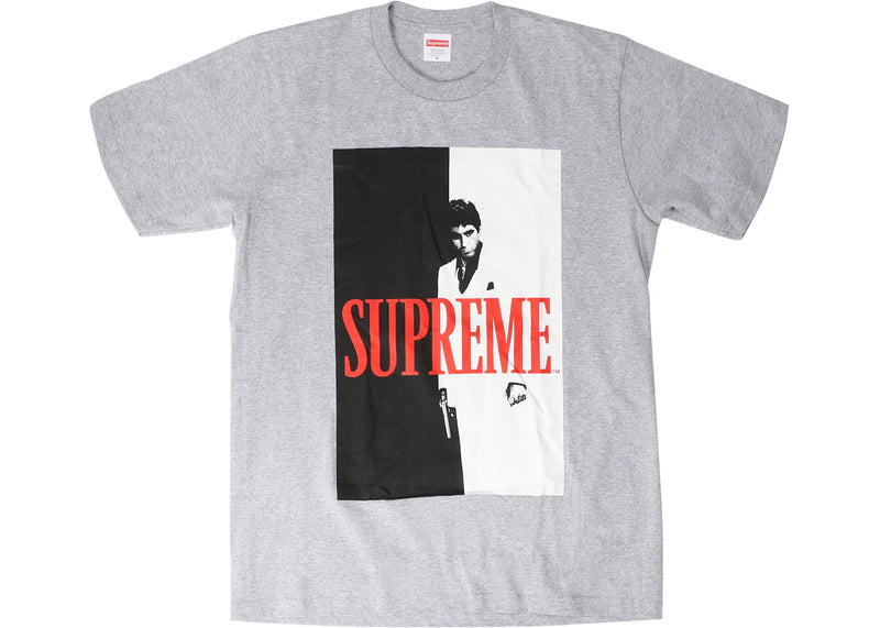 The Supreme Scarface Split Tee Heather Grey is now available at Side Kicks!