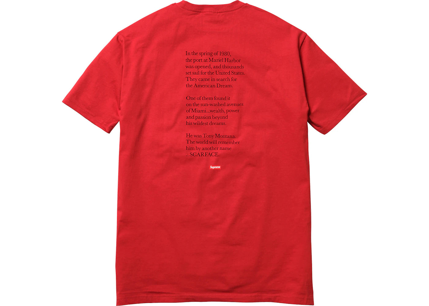 The Supreme Scarface Split Tee Red is now available at Side Kicks!